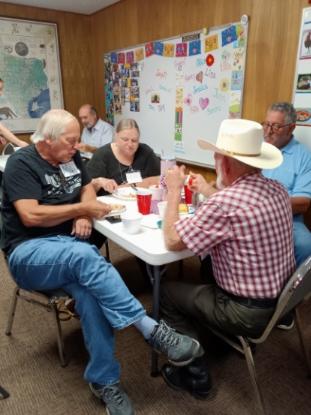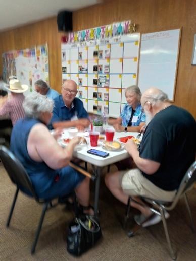 Some of our members and a guest enjoying their lunch while visiting with each other.