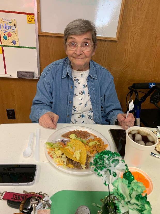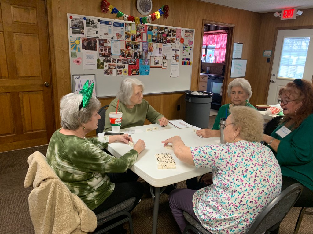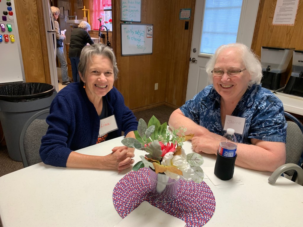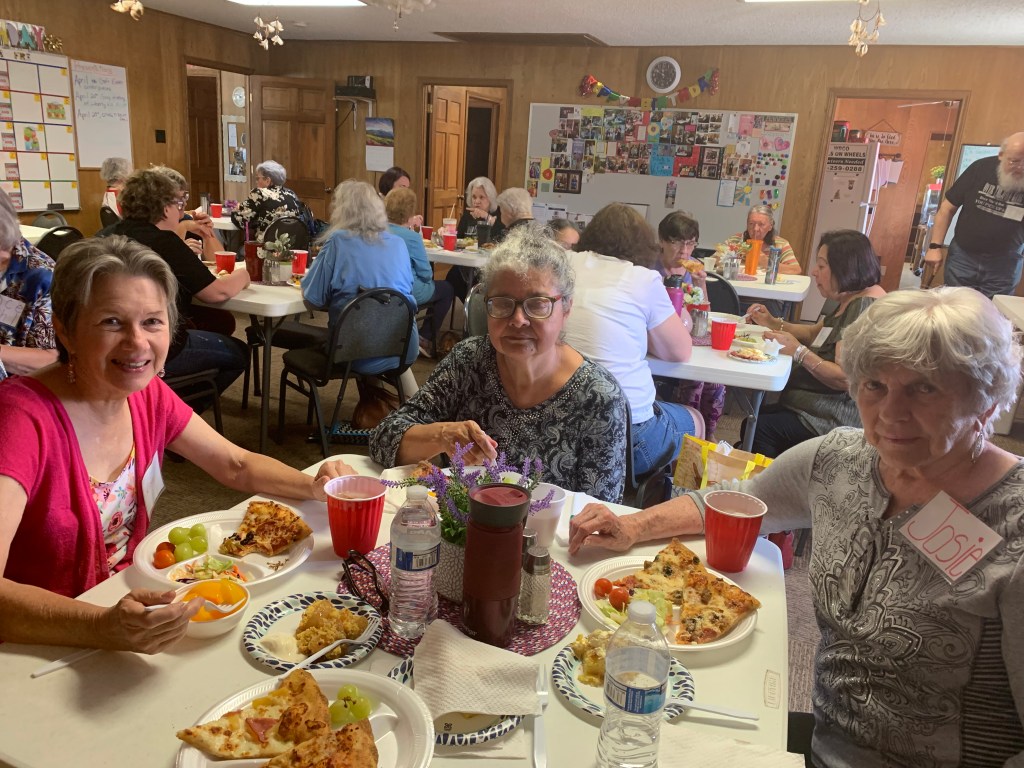 Another new member visiting with Ms. Lisa and Ms. Josie, while enjoying lunch.