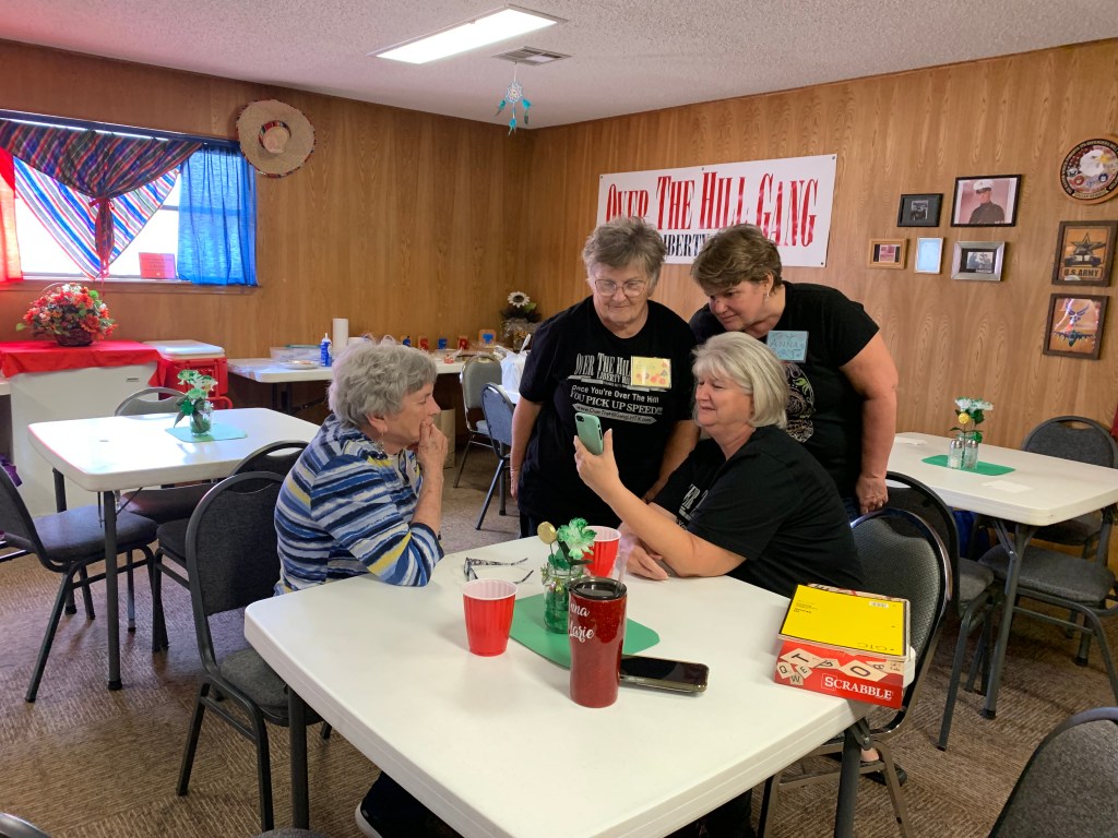 THE LADIES PLAYING SCRABBLE (Our V.P. photo bombing)
