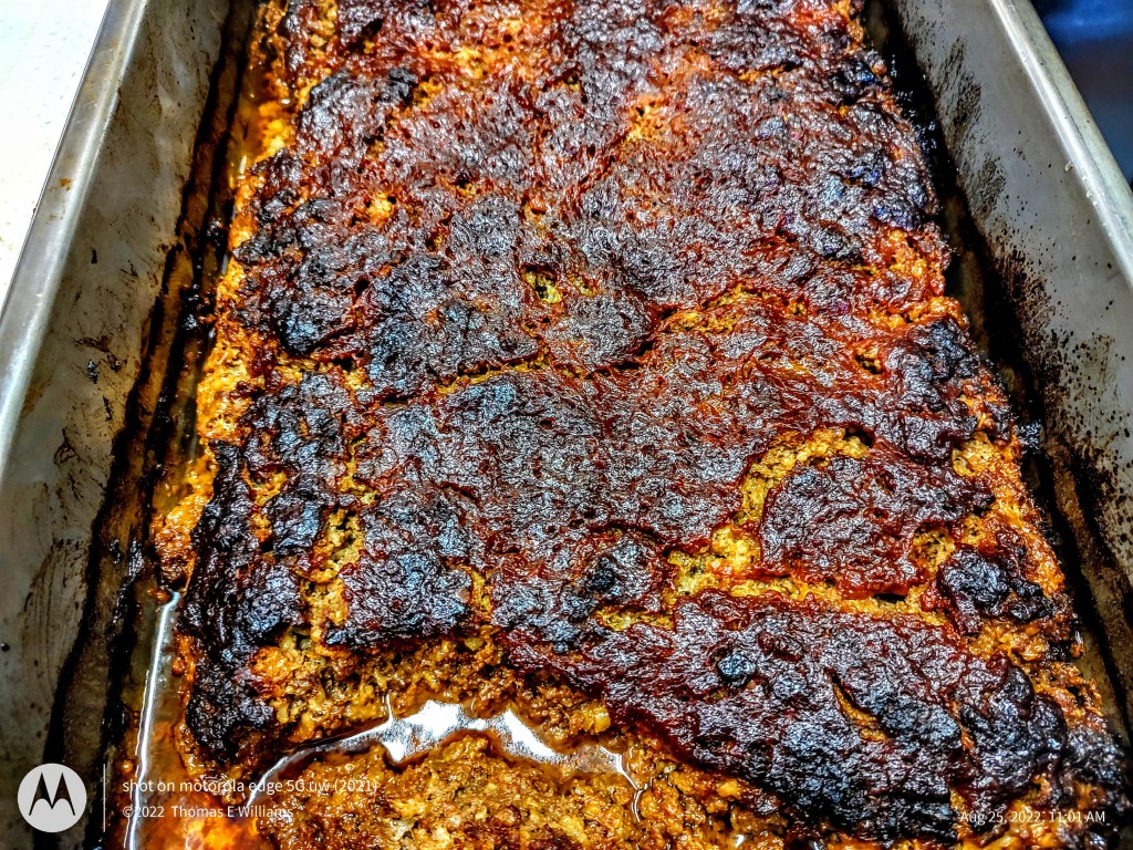 Lunch and was Meatloaf, deviled eggs, green beans, mandrin oranges with bananas, and of course pinto beans