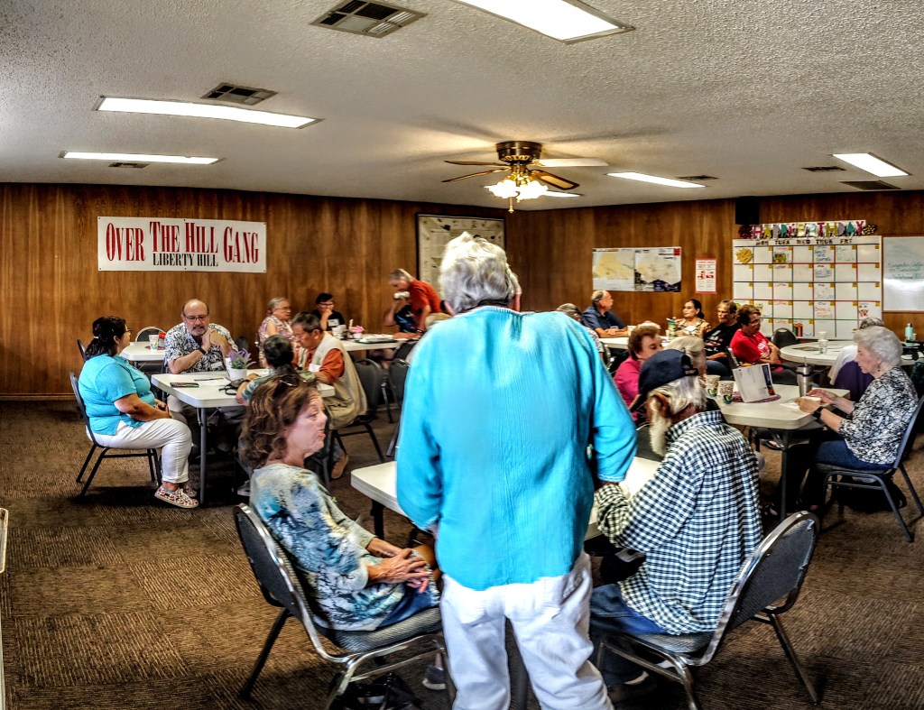 Over The Hill Gang Self-funded Senior Center 3407 Ranch Road 1869 Liberty Hill Texas (behind Parker's Corner) Recreation, Socialization, and Education for seniors 50+.