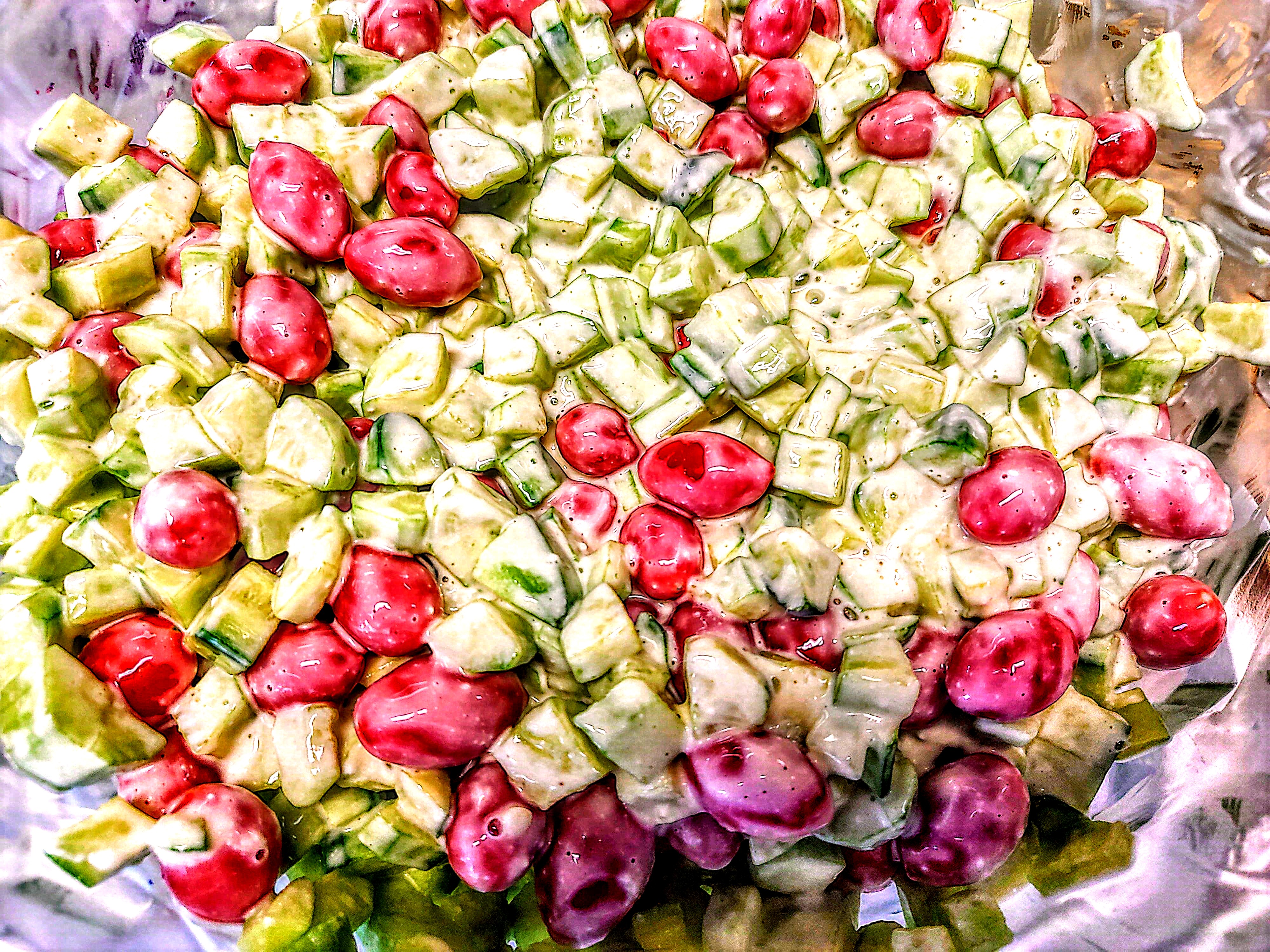 The spaghetti and cucumber tomato salad were both hits.