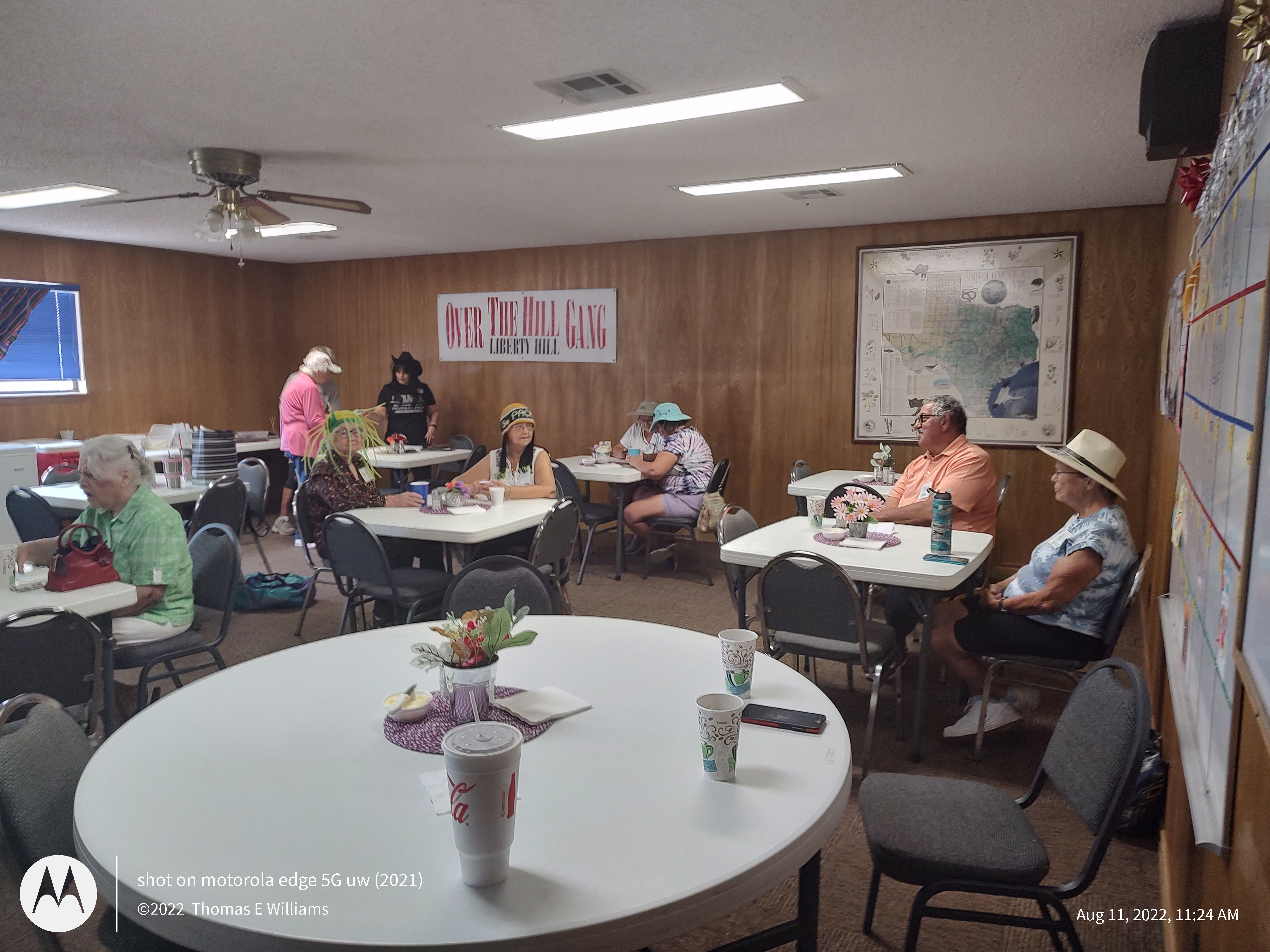 OTHG 08/11/2022 I have a doctor’s appointment and will be leaving right after lunch. Please help with food and dishes clean up and put away. Help is ALWAYS APPRECIATED Parking. You may have noticed that parking is at a premium here. However, please do not park in the spots next to Parker’s Market. Also, in days gone by, there was a handicap spot next to the curb at the back door. The city removed it because it blocks the drive and makes it nearly impossible to pull out of the parking along the south. There is parking on the north, East, and south side of the building. It is okay to park on the grass to the west of the building both near the building and across the drive. Be aware that semis come in and out of that drive, so allow enough room for them to make the turn. Today is Hat Day. Bring your hats up here – with your head still in them. Remember, next week is Shirt Day on the eleventh. Speaking of shirts … those who ordered ¾ sleeve, we need to speak to you because the solid colored shirts are not available. On the 28th we will bring you to Bring a Friend. Yes we are trying to increase membership … so the friend has to be a qualifying senior. But you and they Eat For Free. We have some new games that we hope to introduce soon … either after the Thursday lunches or, perhaps on a separate day. Do we have any mahjong players? How about bunco players? This is something that shouldn’t need to be said … but … Folks remember BE KIND when playing games. They are only games, after all.