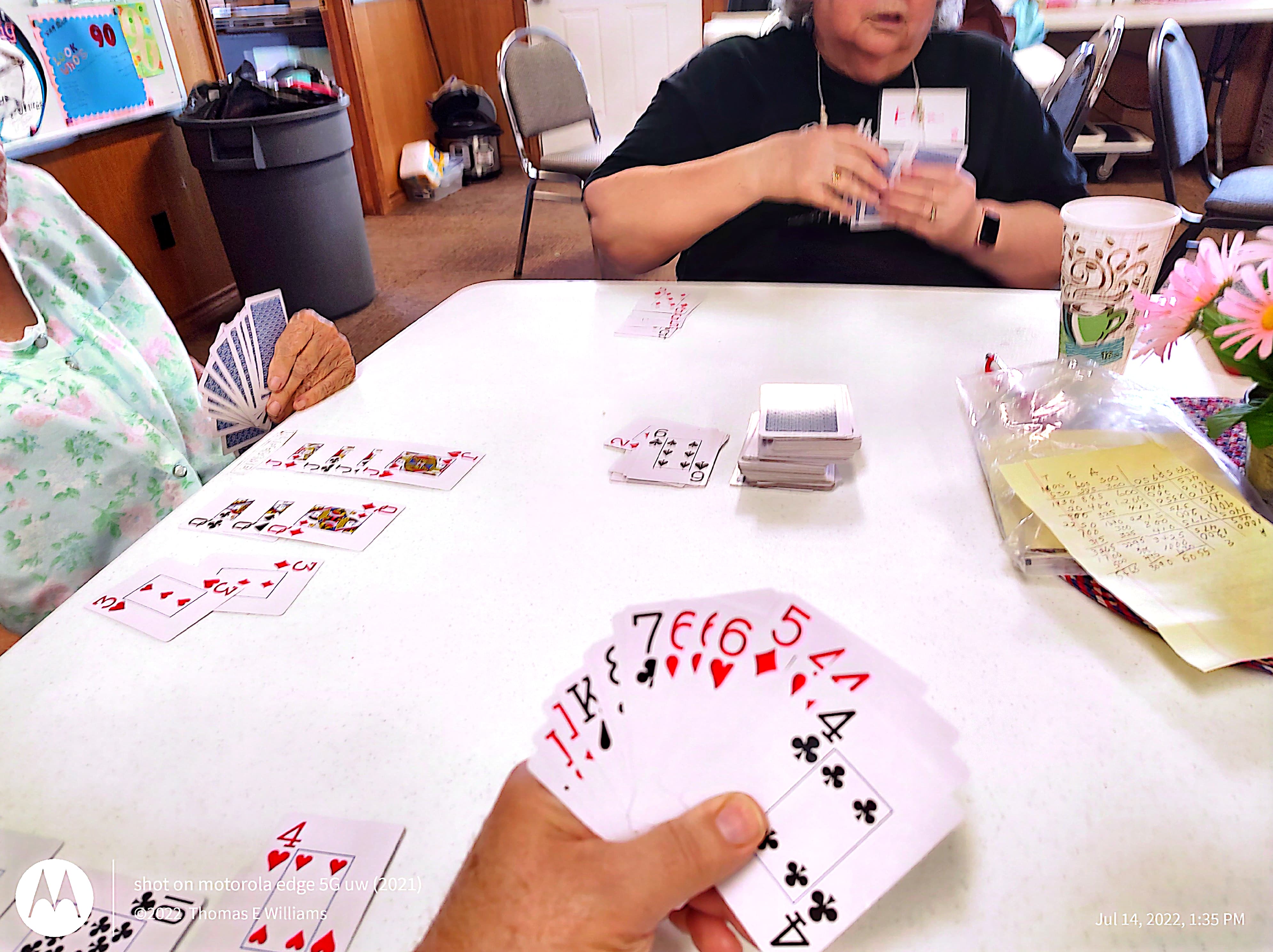 After lunch games were played. Five Crowns has become a club favorite. Dominoes and Canasta were also enjoyed. If you have a game you really enjoy, bring it and invite people to join you.
